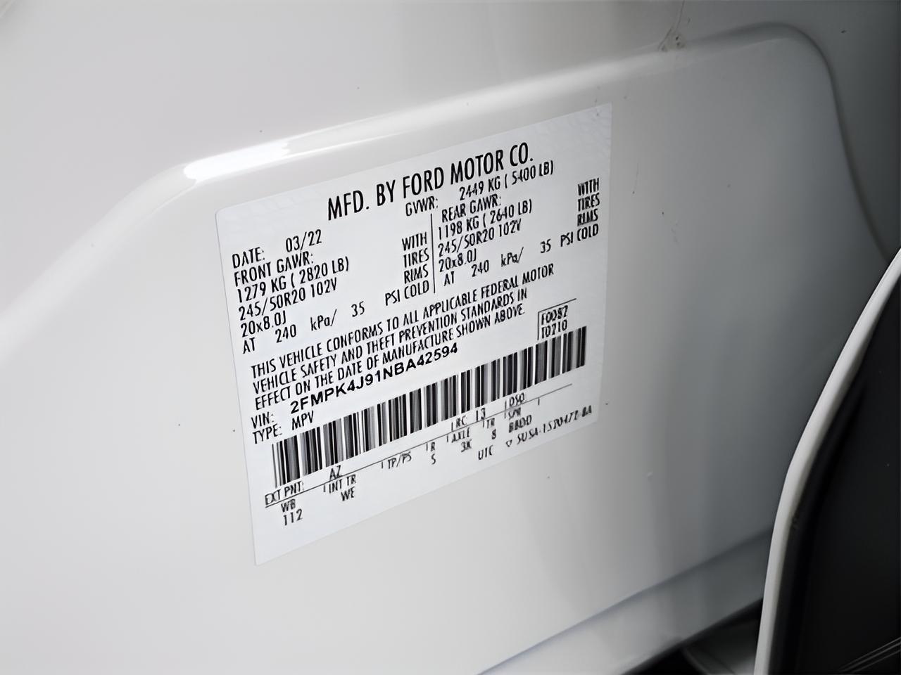 - Front Tire Size: P245/50VR20